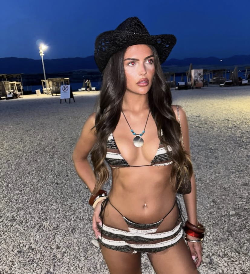 Knitted two piece beach set, perfect with brown pirate boots and thick resin bangles for a bohemian chic vibe.
